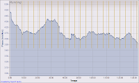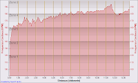 Nella giungla umana accenno un'occhiata all'orizzonte...niente palloncini! Porca miseria bisogna attivare il piano B! Il piano B prevede un tatticismo molto sopraffino che consiste in una sonora sgasata esagerata da mantenere fino al ricongiungimento coi fuggiaschi!!! Ovunque essi si trovino! Piano B che viene chiamato anche piano alla "Katzen"! Ecco così che lo zigzag fluido diventa fluidissimo! Dopo qualche minuto però i primi frutti, ecco i primi palloncini...1h50'...si buonanotte mi dico, il pedale rimane sull'acceleratore con buona pace per il primo chilometro che è andato. Ecco altri palloncini....1h'45''...beh giustamente direi...si tira ancora, si supera, si esagera, si stravolge tutto. Secondo chilometro volato...terzo chilometro, ecco i fuggiaschi!! Palloncini viola della malora! Finalmente mi aggancio, il piano B diventa di nuovo piano A e mollo l'acceleratore facendo respirare un po' muscoli e fiato. (dal grafico dello sforzo di vede come dal 4° all'8° Km i bpm siano scesi) Ritmo da 4'44'' (qualcosina in meno) per circa 5 Km.