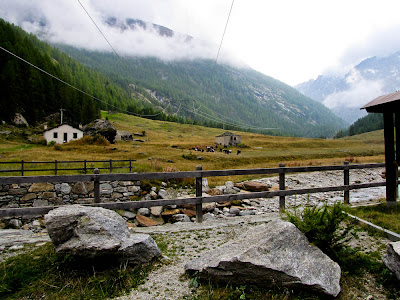 Dopo aver incamerato quelle cinquemila calorie cadauno, alziamo i tacchi e ci dirigiamo con fare sicuro in Valsavarenche e precisamente in località Pravieux dove ad attenderci c'è un grande parcheggio con una gigantesca scritta: "RIFUGIO CHABOD"! Si, dovremmo esserci... :D